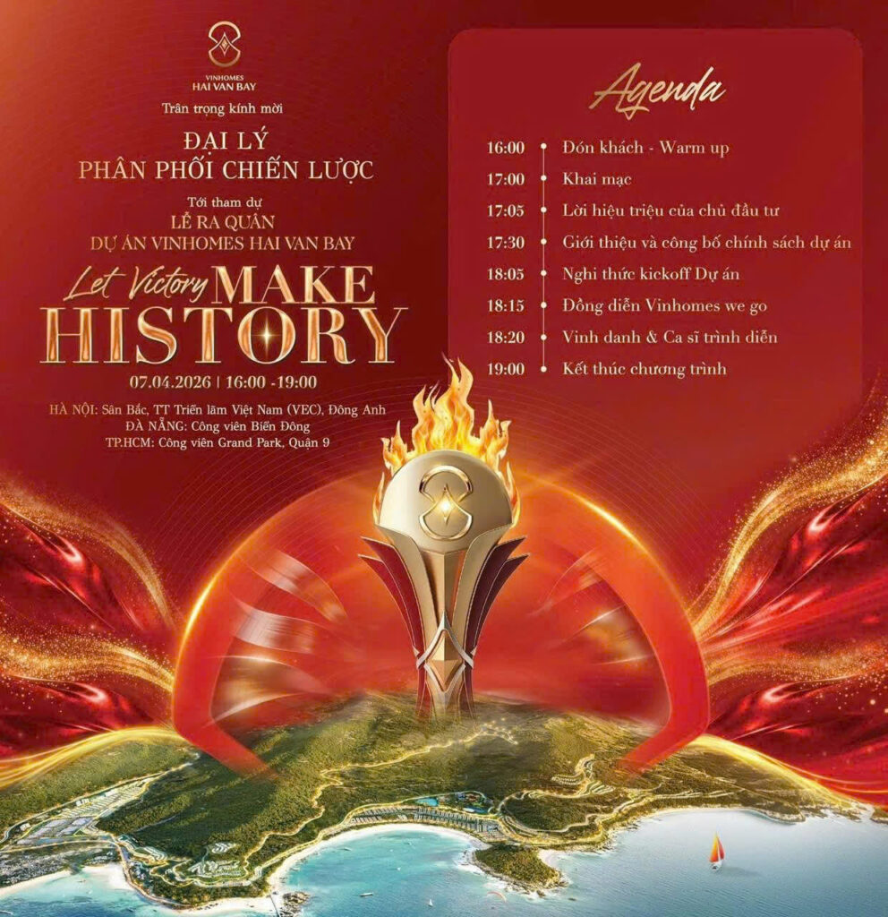“Let Victory Make History” không chỉ là khẩu hiệu – đây là lời tuyên ngôn mạnh mẽ rằng Vinhomes cùng toàn bộ hệ thống 46 đại lý đang cùng nhau viết nên một trang sử mới cho bất động sản nghỉ dưỡng Việt Nam. Mỗi căn nhà tại đây không chỉ là nơi ở, mà là tài sản di sản, là “vàng ròng ven biển” hiếm có với giá trị gia tăng bền vững theo thời gian.