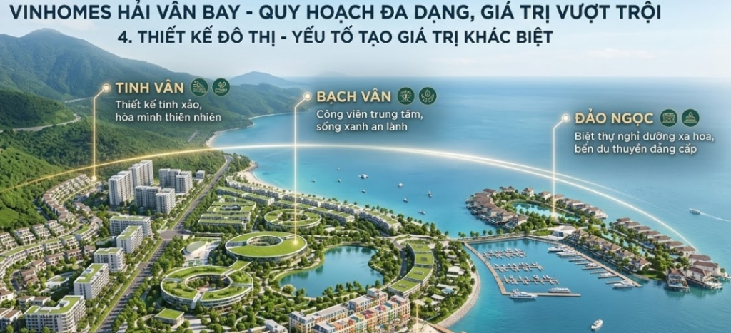 Một trong những điểm nổi bật của Vinhomes Hải Vân Bay là quy hoạch nhiều phân khu mang phong cách riêng biệt, tạo nên hệ sinh thái đô thị đa dạng.